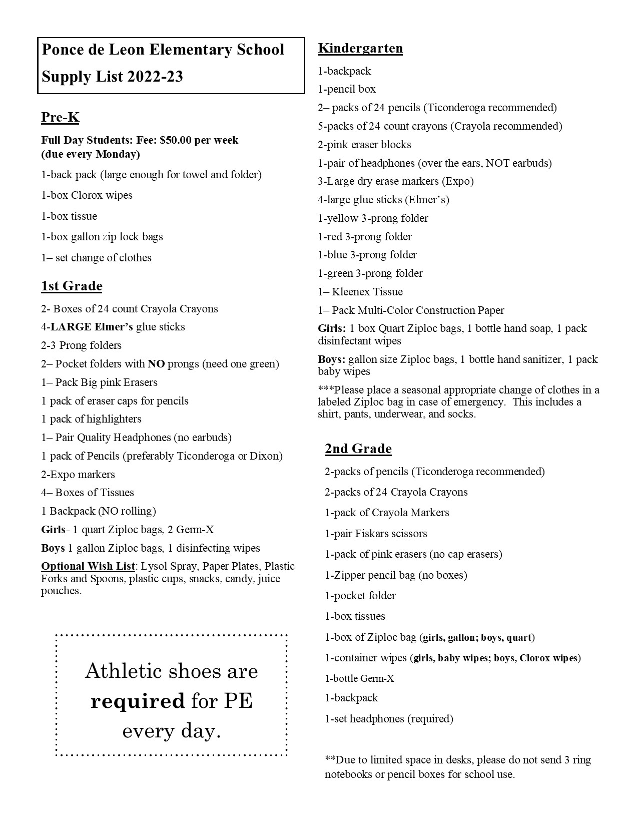 2022-23 School Supply List July 12, 2022 - August 31, 2022 Related Files School Supply List22.23 Updated.pub (108.5 KBs) School Supply List22.23 Updated.jpg (340.2 KBs) School Supplies 22.23Pg 2.jpg (277.3 KBs) School Supplies 22.23Pg 2.pub (105.5 KBs) Permalink: http://poncedeleonelementary.sites.thedigitalbell.com/2022/7/2022-23-school-supply-list